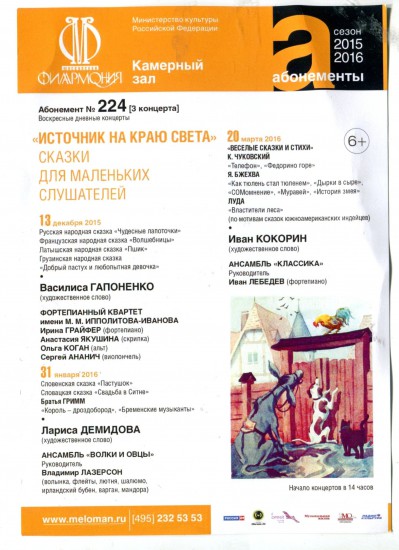 Источник на краю света. Сказки для маленьких слушателей. Чайковского им. концертный зал