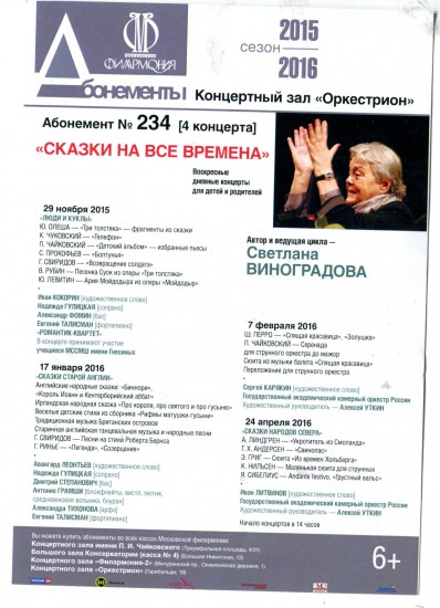"Сказки на все времена", ведущая Светлана Виноградова. Чайковского им. концертный зал