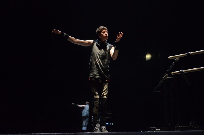 Перед нами балетный класс со станками и зеркалами, затянутыми поначалу черными занавесами. Открытие зеркал главным героем и рассказчиком – снятие пелены воспоминаний. И далее – экзерсисы, тренинги, соперничество, демонстрация сил и умений, постоянная гонка жизни, когда класс превращается в ринг. И две судьбы – лошади и ее хозяина, в истории которых просто и трагично явлена философия. Нет, не добра и зла, но доброты и никчемности, преданности и безразличия, верности и ветрености, глубины и поверхностности – сравнения можно множить, как множатся они в спектакле. По режиссерской воле, но и благодаря двум замечательным актерским работам – Владимира Морякина (Холстомер) и Владимира Гальченко (Князь Серпуховской).