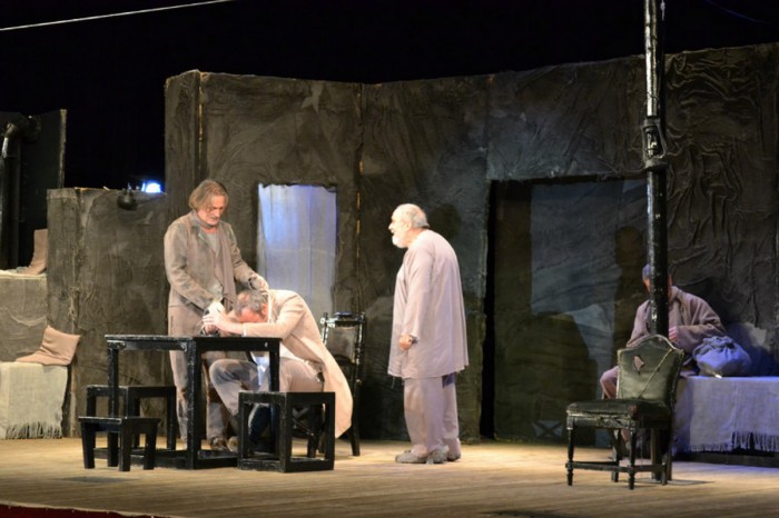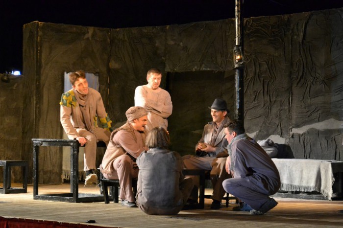 Впервые пьеса М.Горького «На дне» была поставлена в 1902 году. На первый взгляд может показаться, что трагическая картина жизни обитателей дна общества, которую описал выдающийся автор, давно в прошлом. Однако это не так, ведь проблема сохранения человеческого достоинства в невыносимых условиях остается актуальной на все времена – и особенно сегодня, на заре XXI века. Постановщики спектакля «Без солнца» сделали акцент на поиск персонажами собственной идентичности, на попытки доказать свою человечность как средство выживания в жестоком и беспринципном современном мире. Первая постановка пьесы «На дне» в театре «Сопричастность» была приурочена к 850-летнему юбилею Москвы, и возобновлена в 2008 году. Герои спектакля «Без солнца» - обитатели «дна» жизни. Здесь лишь убогие обрывки напоминают об остатках цивилизованной культуры, но персонажи стремятся сохранить человеческое лицо. Порой их стремления принимают причудливые или нелепые формы, что влечет нетерпимость героев друг к другу и взаимную критику. Мир беспросветности, мир нищеты, существующий бок о бок с благоустроенностью, таит в себе опасность как для самих обитателей этого мира, так и для всего общества.